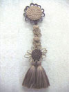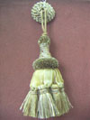 A combination of a Button and a Tassel, they are used on cushions, sofa or chair arms and on pleated curtain valances and pelmets. Any of our Tassel designs can be made with a Rosette top.